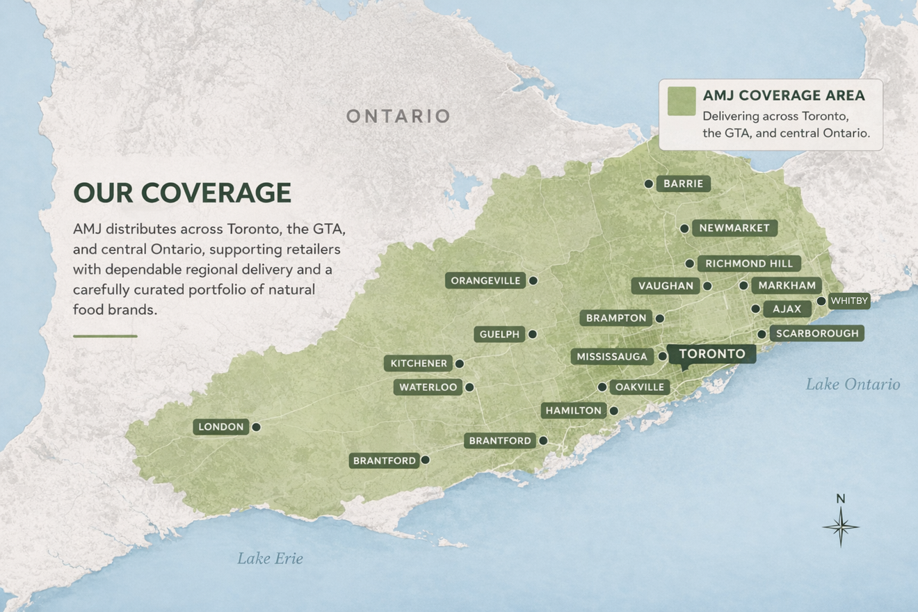 From Newmarket to Mississauga, Vaughan to Hamilton, and throughout our established central Ontario routes, we help retailers access natural and organic products with dependable service and local knowledge.